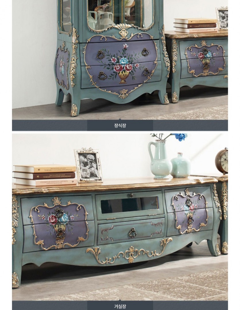 비올렛 엔틱 원목 거실장 세트 > 가정용